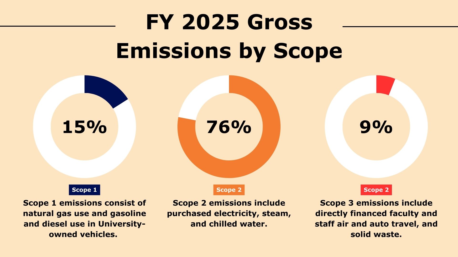 The 2024 Climate Action Plan (PDF version) establishes a two phase approach to reaching carbon neutrality by 2032. Phase I focuses on energy efficiency projects, the transition to a zero emissions fleet, and scope 3 policy updates. Phase I also explains how upgrades to the steam and chilled water plant will help reduce annual emissions, specifically scope 2. Strategies to reduce scope 3 emissions are also included in phase I.